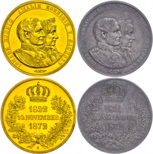 The 20 mark coin with the portrait of the German Emperor Wilhelm II, which is partly offered on the market in larger quantities, is one of the most famous gold coins from the German Empire. Millions of this type of coin were minted between 1890 and 1913. The fine weight is 7.16g and is usually traded close to the gold price with rather small markups.