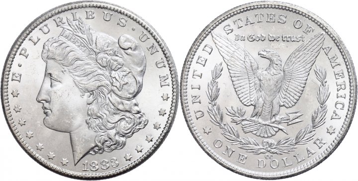 The US Morgan dollar was minted in 900 silver from 1878 to 1904. Starting in 1921, it was minted again, this time in 800 silver. This popular silver coin is very often found in collections, as some dates were minted more than 20 million times. Aside from the mints Denver (D), San Francisco (S) and Philadelphia (without minting letters), the mint Carson City (CC) is particularly popular with collectors. The less interesting coins that are available in large numbers can be purchased in average condition for 20.– to 30.– euros in specialist shops.